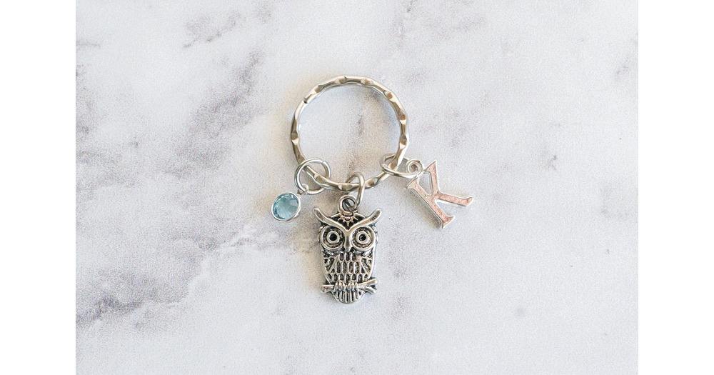 Owl Keychain - With Birthstone, Initial - Keyring - Zipper Pull - Free Shipping and Quantity Discoun