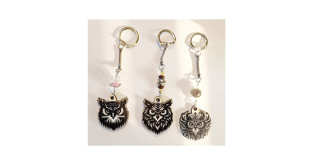 3 Owl Key Chains Ready to Ship Black White Acrylic - FREE SHIPPING