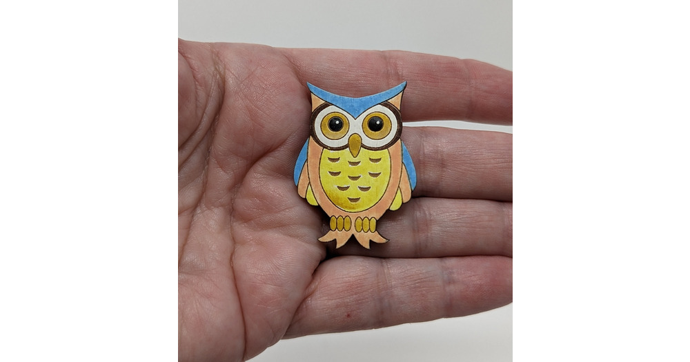 Whimsy Owl, Lapel Pin, Hand-painted Wood, or Magnet, Bird Art, Jewelry, Pins by Joanie, gifts for he
