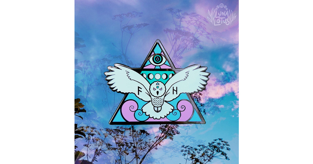 Owl Hard Enamel Pin - Glow in the Dark Lapel Pin - Third Eye Magic Brooch - Bird of Prey Pin - Moon