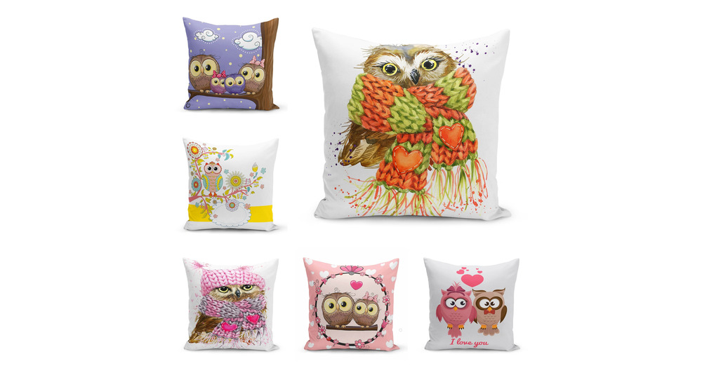 Romantic Owl Pillow Cover, Cozy Animal Cushion, Whimsical Love Decor, Cute Bird Art Throw Pillow Cov