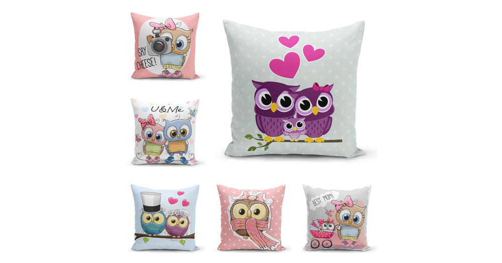 Cute Family Owl Pillow Cover, Cartoon Animal Cushion, Whimsical Love Decor, Adorable Bird Art Throw
