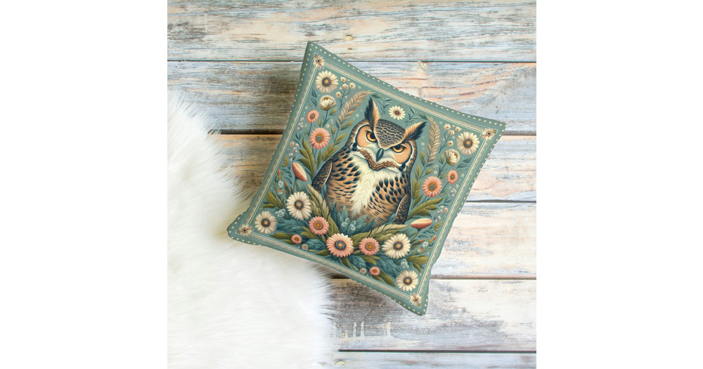 Floral Owl Pillow, Whimsical Woodland Animal Throw Pillow, Sage Green Cottagecore Home Decor