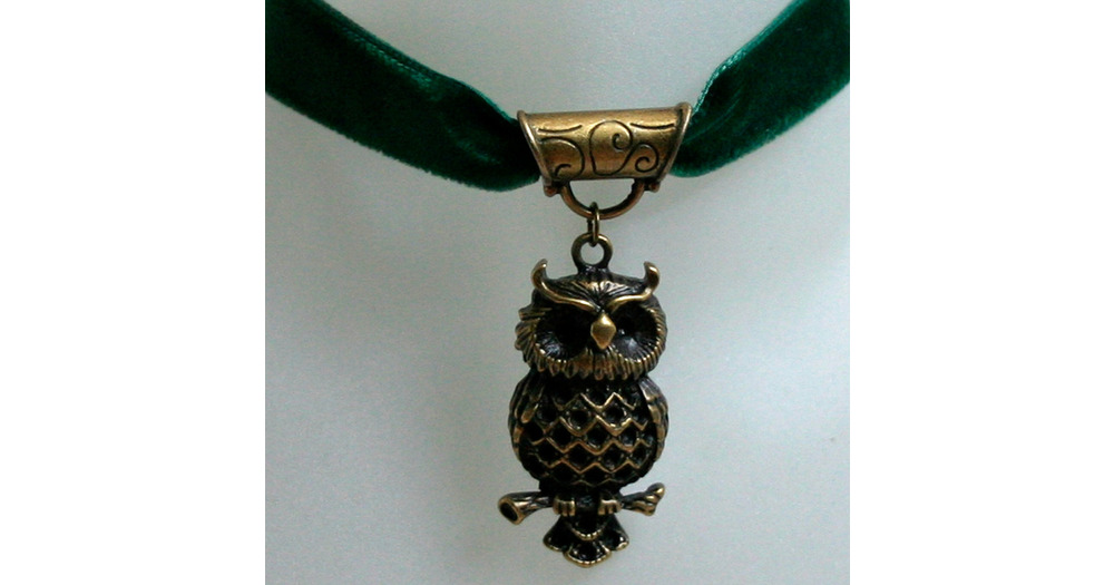 Handcrafted 'Wise Owl' Choker. Steampunk/Pagan/Wiccan. Bronze tone Owl on a Wine, Black, Gre
