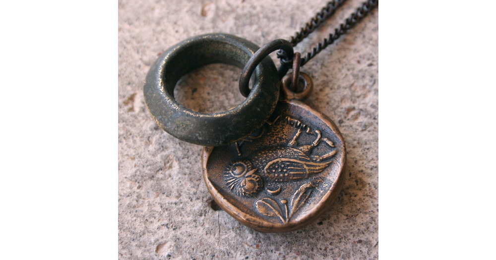 Ancient Greek Solid Bronze Owl Necklace & Ethiopian Brass Rustic Boho