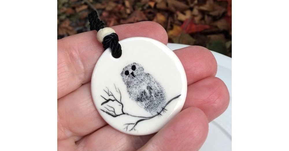 Vintage Porcelain Owl Pendant Necklace: Signed Sorenson Nova Scotia