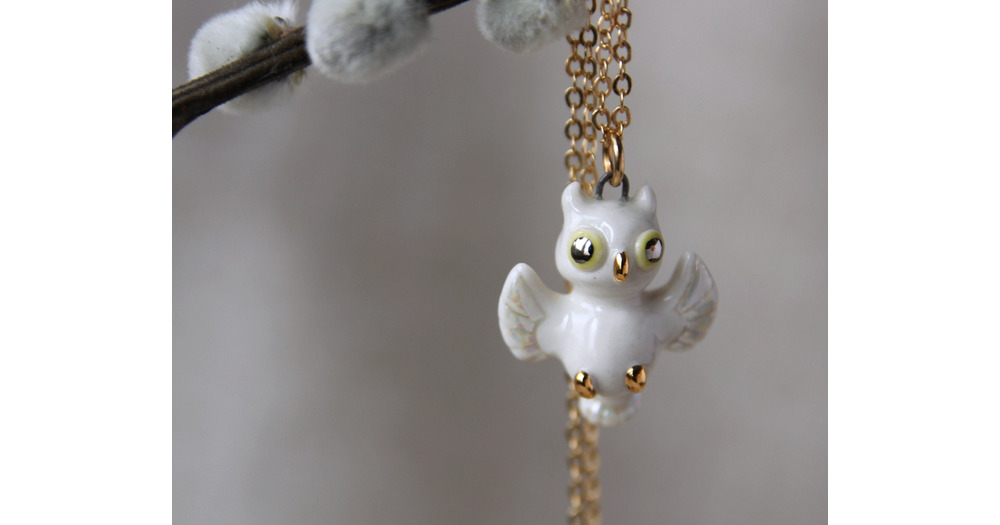 Owl Necklace, Tiny Ceramic Owl Pendant, Night Bird Charm, Small Cute White Bird Necklace, Snowy Owl