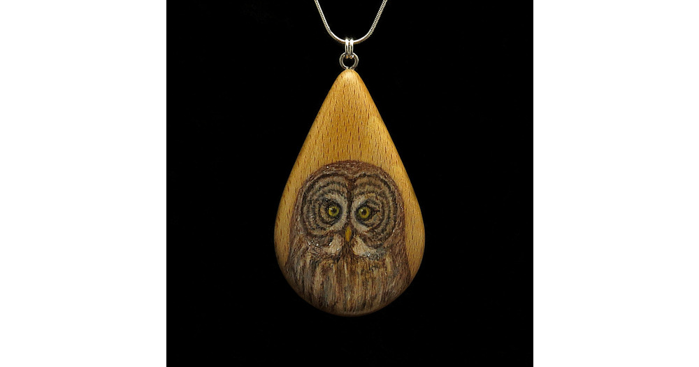 Great Gray Owl on Beechnut Wood Pendant