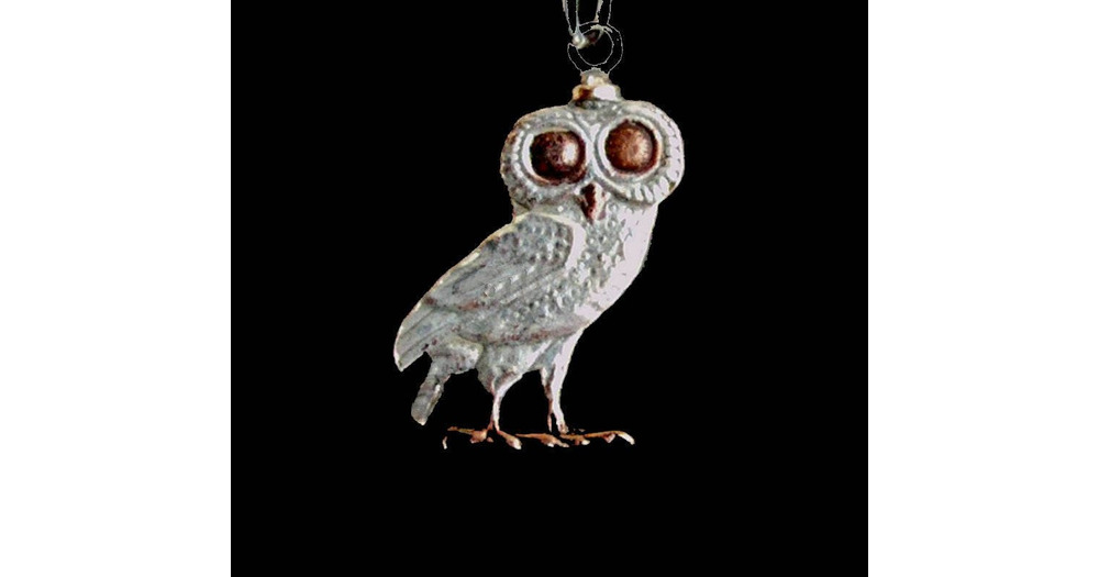 Greece Owl Bird Handmade Cut Coin Pendant Necklace Silver Plated Greek 2 Drachma