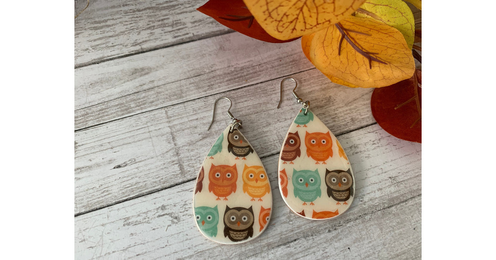 Cute Owl Earrings, Fall Wood Dangles, Whimsical Autumn Accessory, Handmade Jewelry