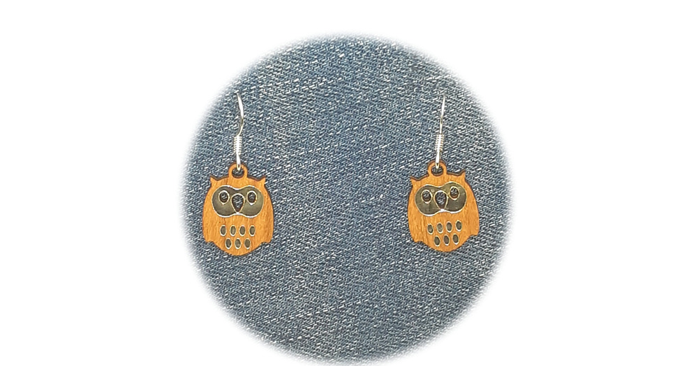 Owls Wood Laser Cut with Silver Accents Lightweight Dangle Pierced Earrings Appx 1/2 inch long choo