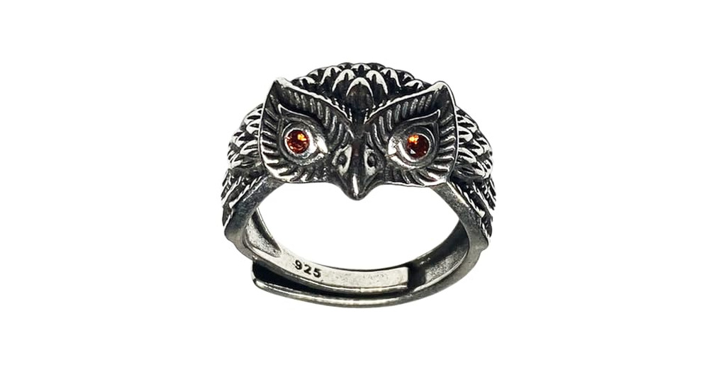 Ch.yishi Handmade Vintage 925 Sterling Silver Owl Gothic ring for Women/Men,Adjustable Thumb Finger