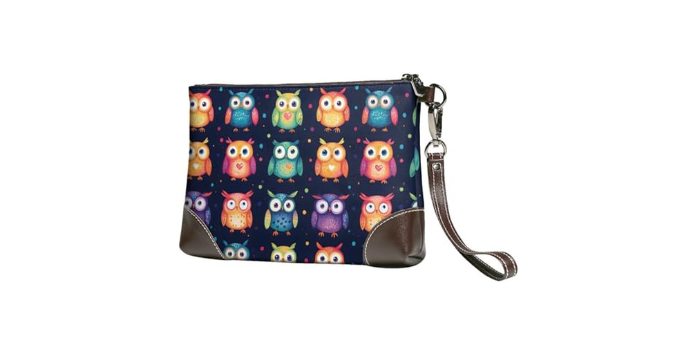 Cartoon Owl Colorful Print Wristlet Clutch Purse for Women, Leather Wristlet Wallet Purses and Handb