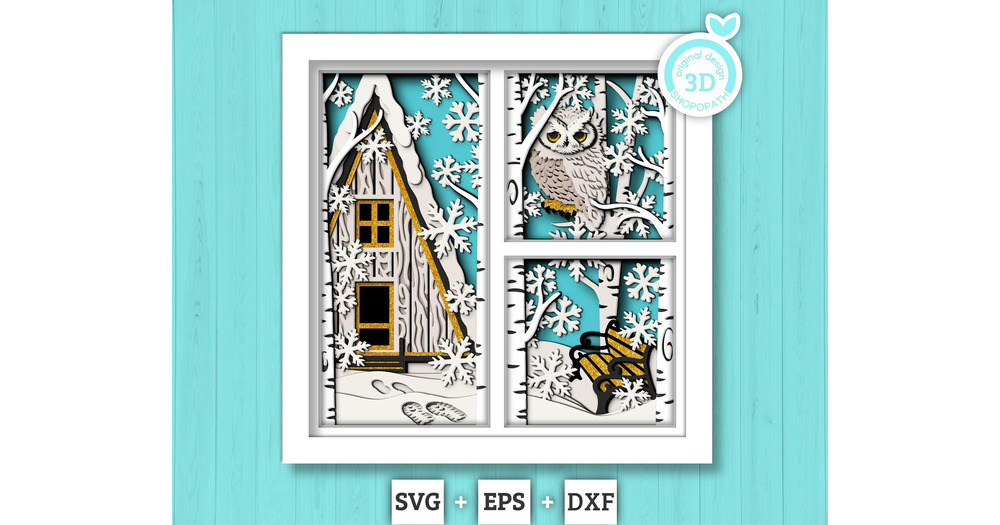 3D SVG Winter Shadow Box, Layered Owl Shadow Box Svg, Snowflakes 3D Svg Birch Forest 3d Svg Christma