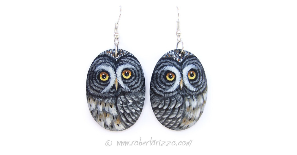 Pair of Great Grey Owl Earrings | Hand Painted Jewels