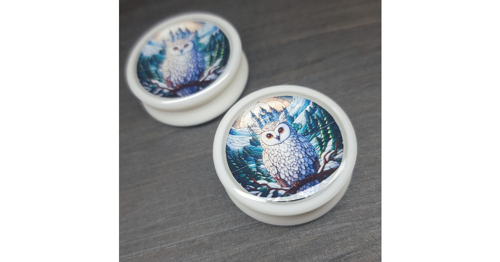 Horned Owl - Plug Gauges Earrings (Pair) (Faux Stained Glass)