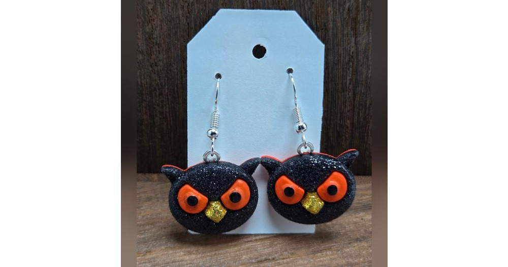 NWT Halloween Black Owl Earrings Sparkle Owl Dangle Drop Light Weight Fashion Costume Jewelry Handma