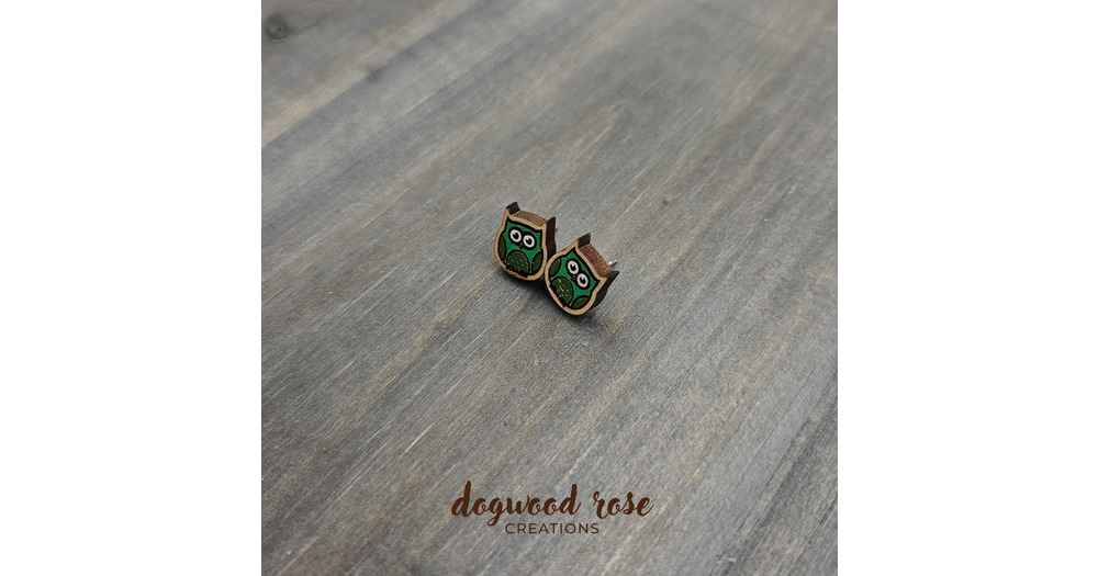 Green Owl Stud Earrings | Wood | Lightweight | Dangle | Owl Earrings | Animal Earrings