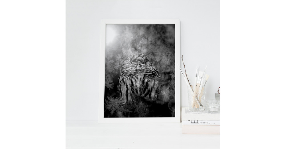 Black & White Owl Art Print: Bird Photography, Nature Giclee Art, Cottage Decor