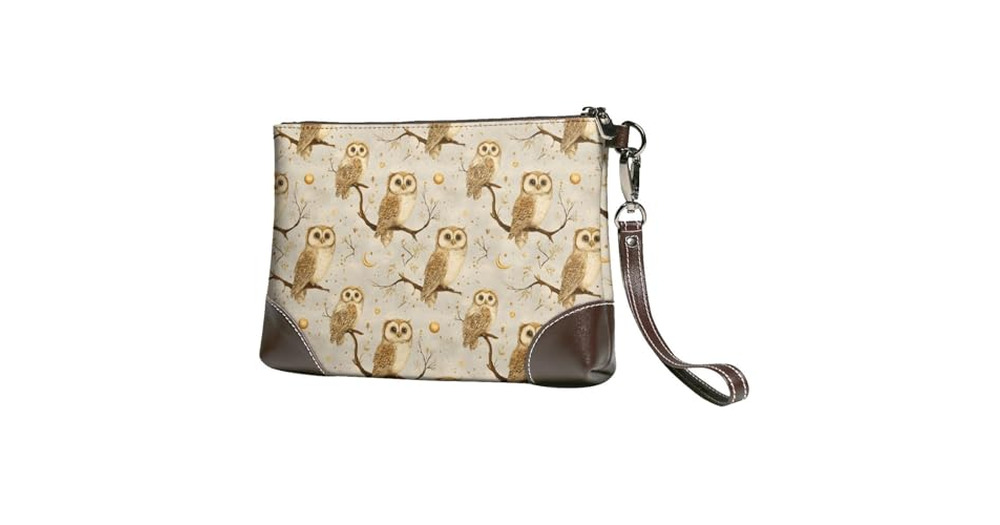 Moon Owl Print Wristlet Clutch Purse for Women, Leather Wristlet Wallet Purses and Handbags