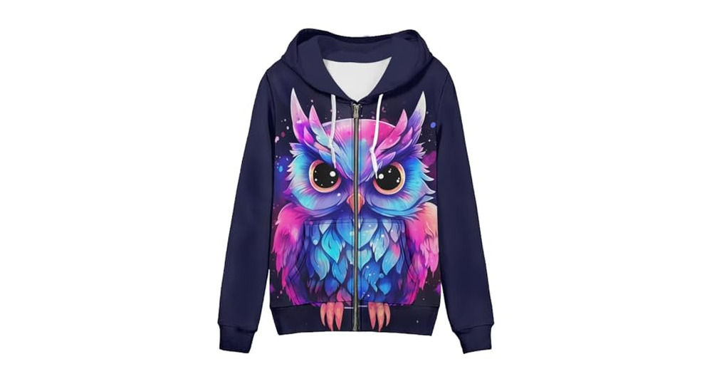 Showudesigns Owl Zip Up Jackets for Women Athletic Hoodies & Sweatshirts Plus Size XL Yoga Cloth