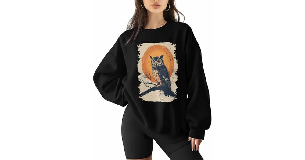 Winvebermior Sweatshirt for Women Abstract Sunset Owl Graphic Womens Sweatshirt Crewneck Long Sleeve