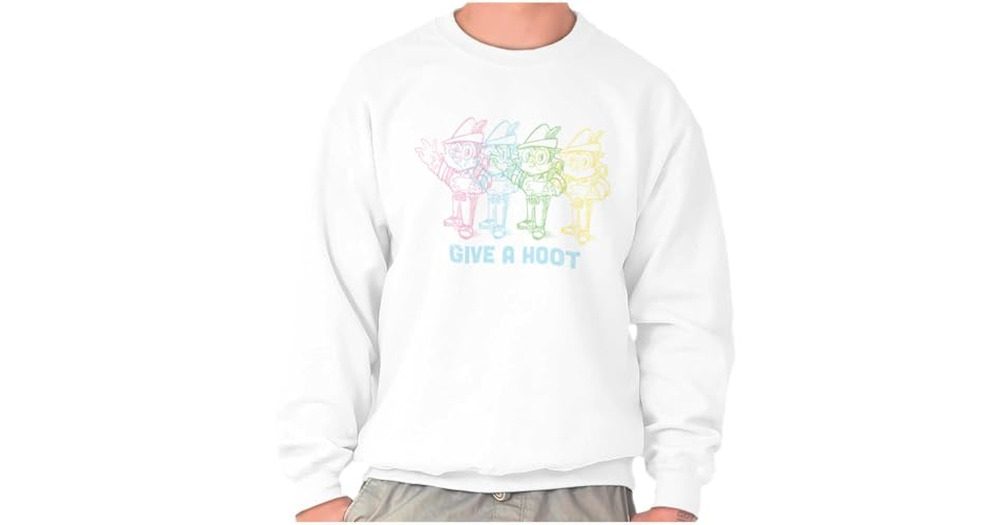 Brisco Brands Woodsy Owl Give A Hoot Color Gradient Sweatshirt for Men or Women White