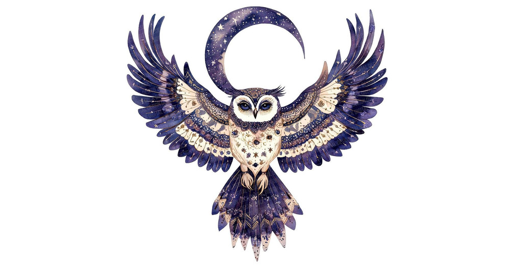Owl and Moon PNG Clip Art, 12x Folk Art Owl Clipart Set, Watercolor Night Sky Clip Art, Paper Crafts