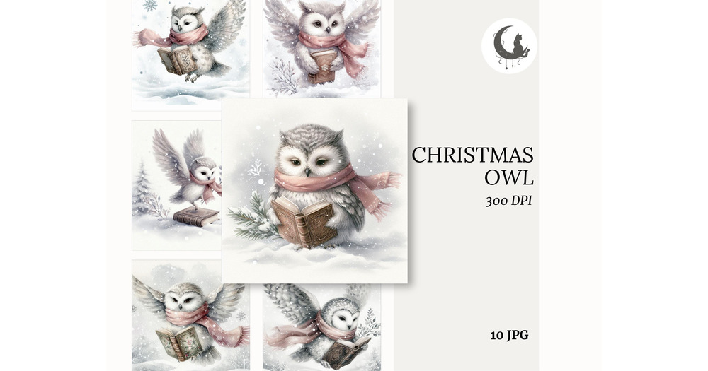 Christmas Owl Watercolor Ephemera Junk Journal Paper Crafting Clipart Holiday Card Element Winter Co