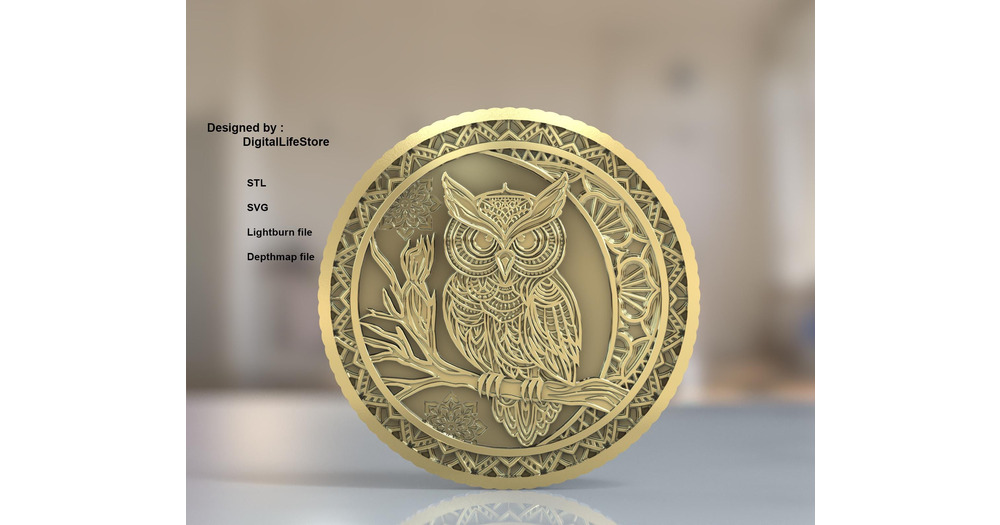 Mandala Owl Fiber laser 3d Engraving Design : SVG, STL, Depthmap, Lightburn files