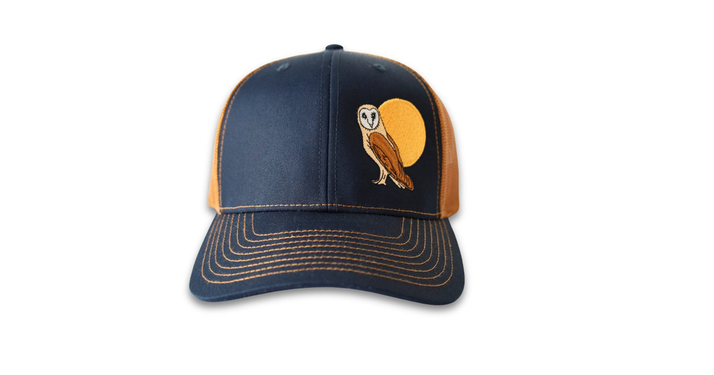 Owl Moon Trucker Hat, Navy/Caramel SnapBack, Hand Drawn Embroidered, Gifts for Animal Nature Lover,