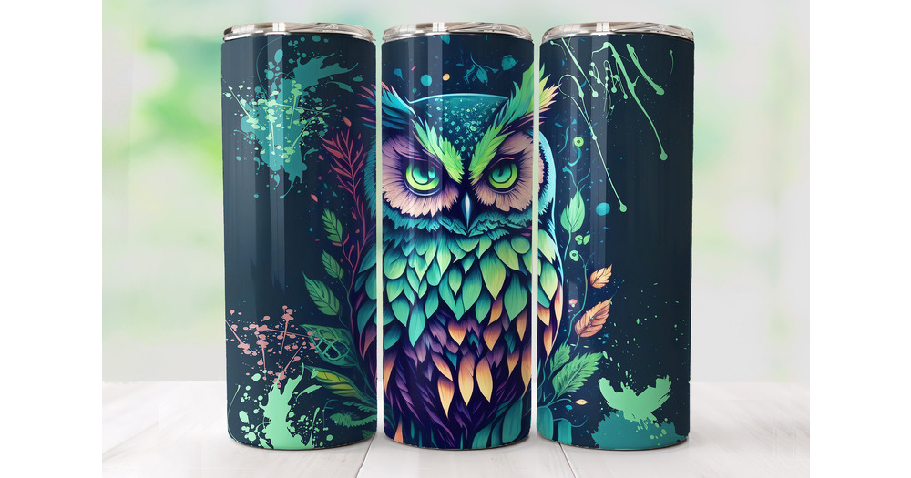 Owl Tumbler Png Design Skinny Tumbler Sublimation PNG Seamless Tumbler Wrap Green Owl Design For 20