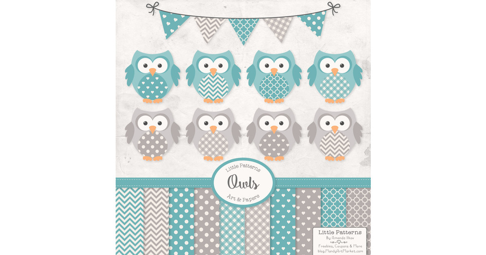 Premium Owl Clipart, Vectors & Digital Papers in Vintage Blue - Vintage Owl Clip Art, Owl Vector