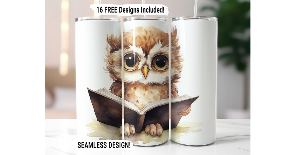 Owl Reading Book Tumbler Wrap Seamless Sublimation PNG, 20 oz Skinny Tumbler Sublimation Education D