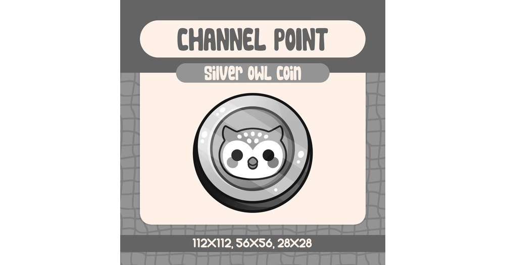 Kawaii Silver Owl Coin Channel Point for Twitch Streamers, Cute Bird Emote Reward Cozy Animal Twitch
