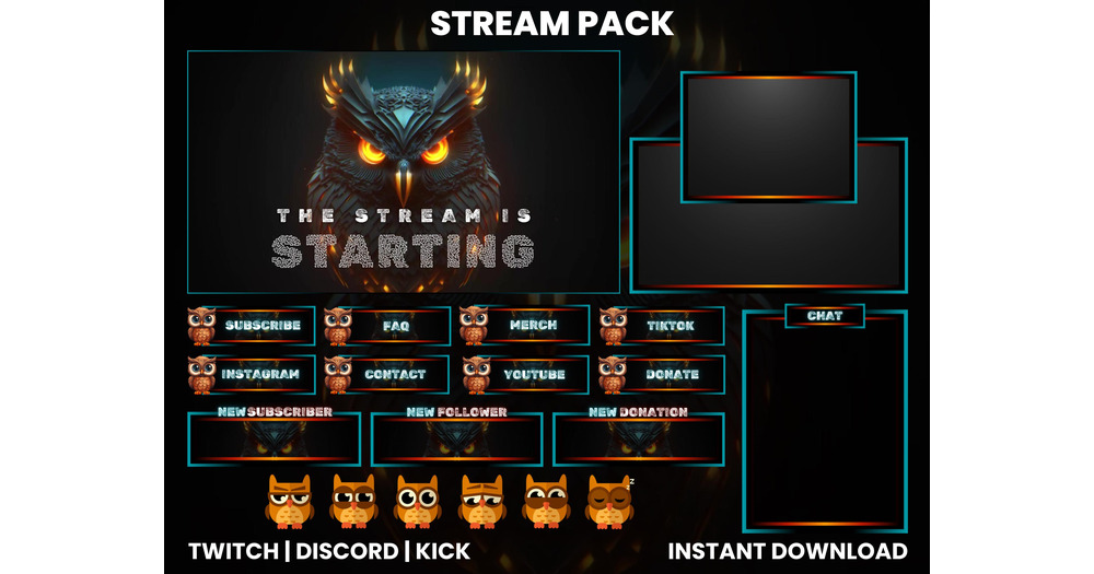 Animated Twitch Stream Pack | Owl Stream Pack | Owl Twitch Emotes | Webcam Overlay | Animated Screen
