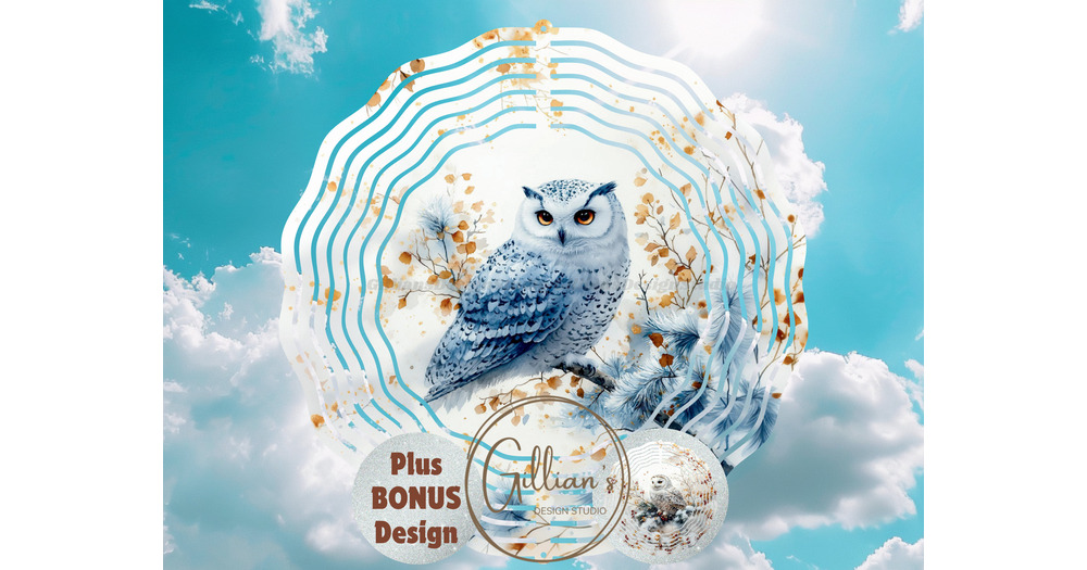Winter Owl 8 inch Wind Spinner Sublimation Design, Instant Digital Download, Bonus Design, Watercolo