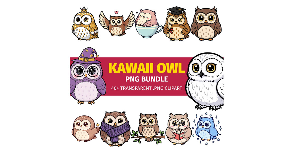 Kawaii Owl PNG Bundle | Cute Cartoon Owl Clipart Pack | Adorable Kawaii Owl PNG Files for Cricut, Su