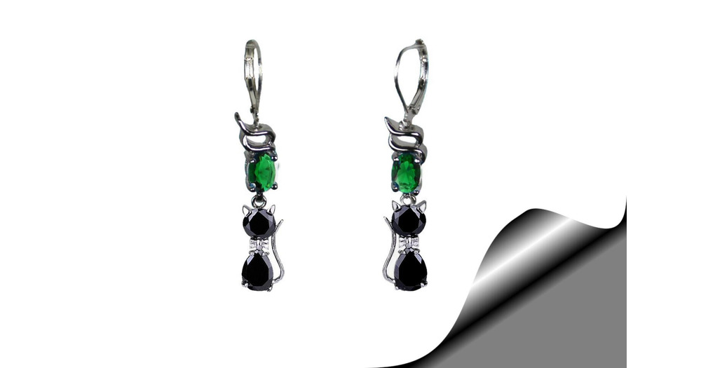 Boucles oreille chat noir hibou cristal,aigue-marine ou autre cristaux,porte-bonheur