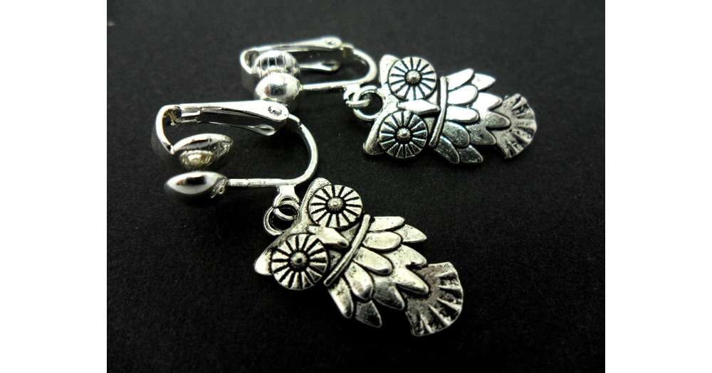 A pair of cute little tibetan silver owl themed dangly clip on earrings.