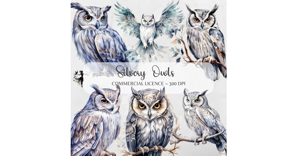 Silver Owl PNG Watercolor Owl Clipart Snowy Owl PNG Owls Junk Journal Owl Printable Clipart Bundle C