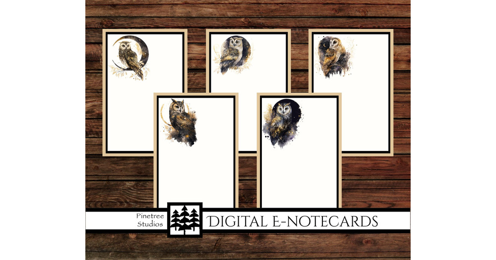 Owls Digital E-Notecards (4" x 6" Portrait) Digital Download ~ Editable / E-Card / Device