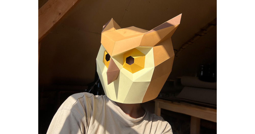 DIY Owl Mask: craft your own funny and playful Owl. After purchase download PDF low poly templates a