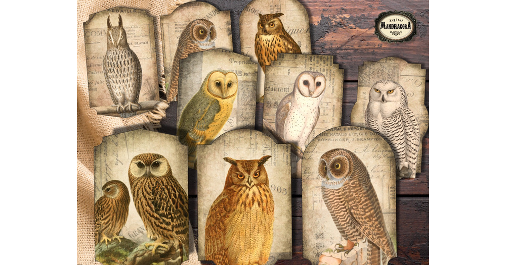 Vintage Owl Labels: Shabby Chic Stickers, Scrapbooking, Junk Journal (Digital Download)