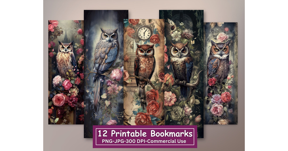 Vintage Fantasy Owl Bookmark Set (Digital Download)