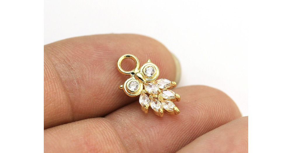 6pcs CZ Owl Earring Charms, Detachable Dainty Animal Charm, Real Gold plated, Earrings Making, Jewel