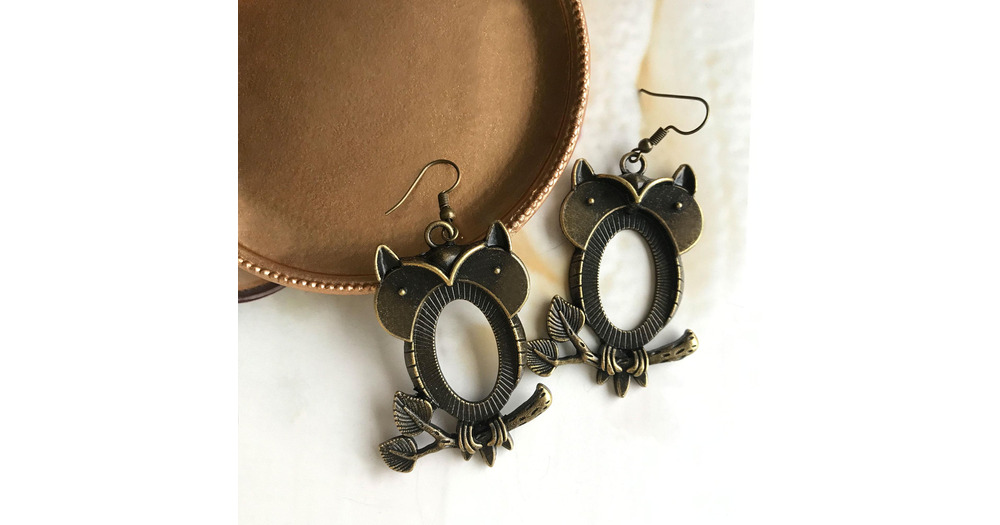 10pcs Owl Earrings Blanks, 20x30mm Oval Dangle Earrings Base, Drop Earrings Bezel Cups Trays ,Caboch