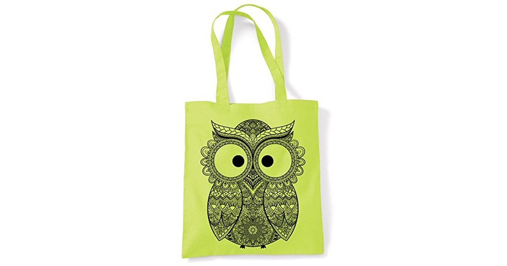Cross Eyed Owl Large Print Tote Shoulder Shopping Bag (Lime Green)