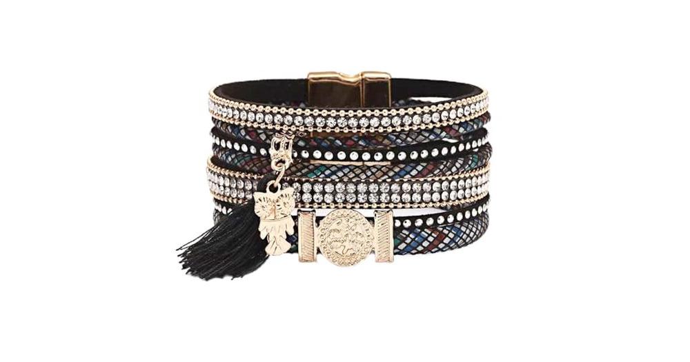 Bohemian Owl Charm Bracelet for Women, Tassel Festival Jewelry Gift - Black