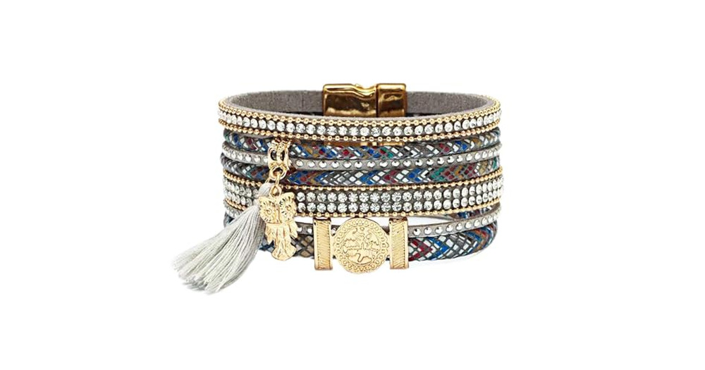 Bohemian Owl Charm Bracelet for Women, Tassel Festival Jewelry Gift - Green